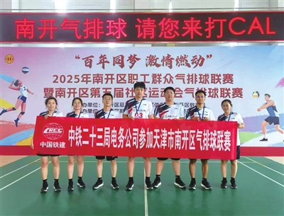 6月20日,由天津市南开区总工会、区体育局、区教育局联合主办的“百年同梦・激情燃动”——2025年南开区职工群众气排球联赛暨第五届社区运动会气排球联赛圆满落幕。中铁二十三局电务公司代表队在本次赛事中奋勇拼搏,勇夺第八名,展现了公司职工的卓越风采和团队精神。通过以赛促练、以赛促建,激发职工的团队协作意识和进取精神,将赛场上的拼搏力量转化为推动企业改革发展的强大动力。 文 池冬梅 图 张宏波