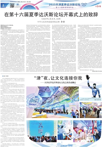 唐代风格舞蹈吸睛,橱窗定格传统艺术,巨轮穿越历史之海,“宇航员”伸出欢迎之手……昨晚,当夏季达沃斯论坛的嘉宾从通道走向天津“文化之夜”活动的会场时,东道主的热情扑面而来。