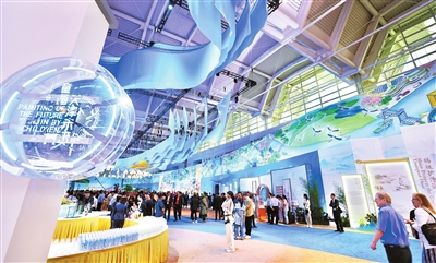 走进活动现场,带有海河水波、古建筑元素的装饰展示着天津古典与开放特质,61幅儿童画组成的英文欢迎语、图文并茂的中国古典故事、选取自博物馆藏品的墙面图案,处处彰显设计上的巧思。