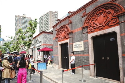 2025年5月1日,游人在位于上海的中共一大会址前留影。