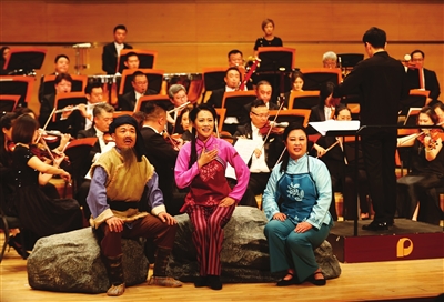 本报讯(记者 王洋 摄影 姚文生)为庆祝中国共产党成立104周年,昨晚,天津歌舞剧院精心筹备的“党旗颂 民族魂”经典民族歌剧选段音乐会在天津大剧院上演,这也是“中银之声”2025天津音乐节的重要演出之一。