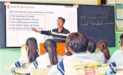 自2010年援青工作开展以来,先后有200余名天津教师分学段开展教育教学,为黄南州教育事业“输血”“造血”。师带徒、思政课、天津班……一批批援青教师怀着热忱之心,跨越山海,奔赴高原,在三尺讲台上用行动诠释着教育工作者的无私与热爱。图为天津第五批援青教师窦松普正在黄南州中学高二(3)班的教室里,引导学生解读英语文章。