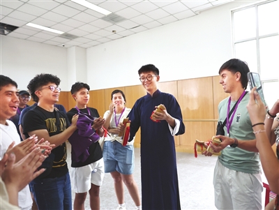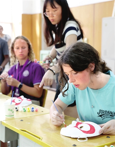昨天,百余名2025年“汉语桥”青少年来华夏令营营员,在天津艺术职业学院画脸谱、舞长枪、甩水袖、拉二胡、打快板,感受中国优秀传统文化的别样魅力。