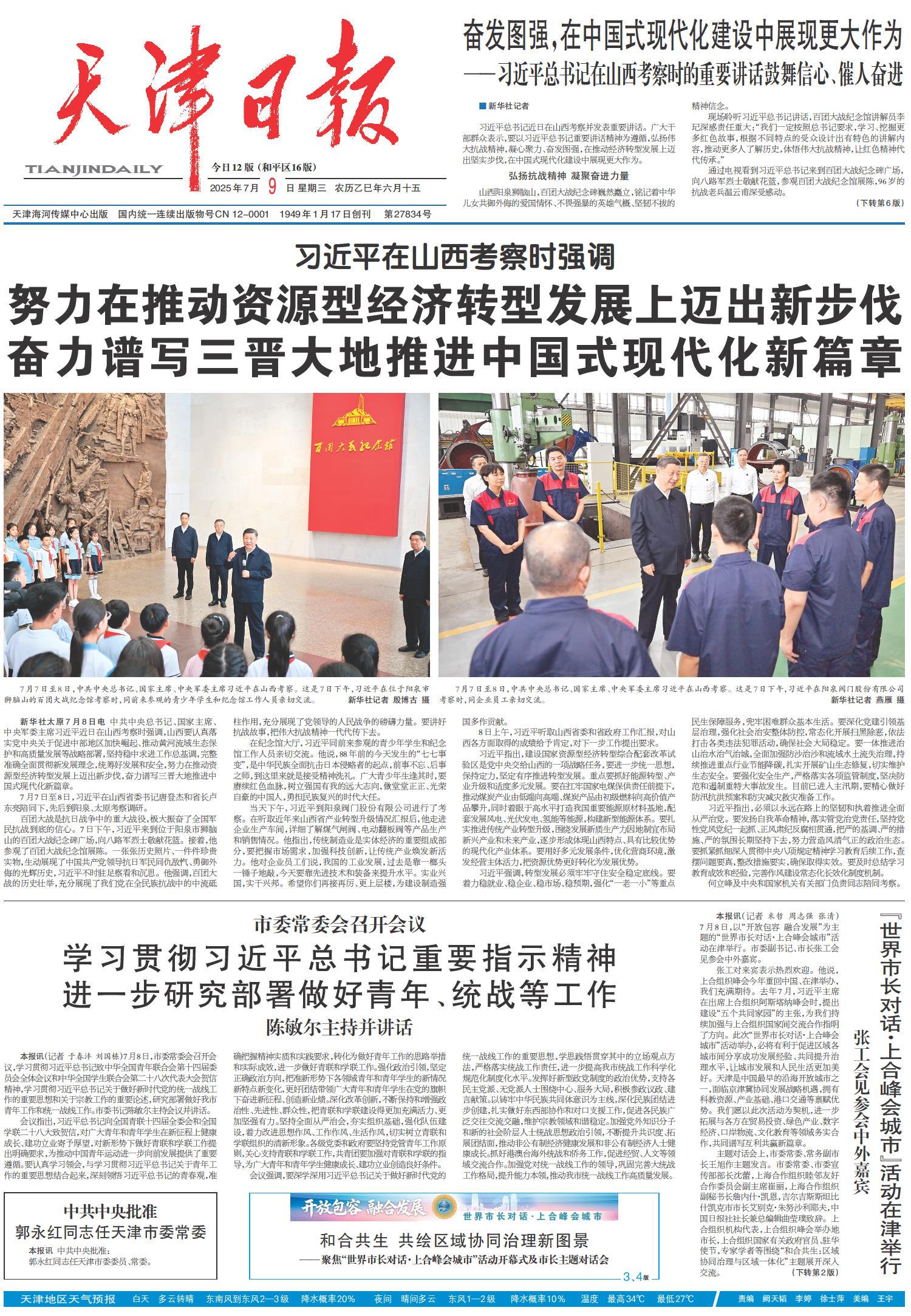 中共中央批准 郭永红同志任天津市委常委