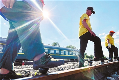 采访结束时,记者来到编组站外,不远处,一列列即将重新编组的车辆滑过驼峰溜放而来,经过一排排刚刚完成巡检的“蘑菇”时发出“叮叮当当”的响声,进而缓缓停下。阳光下,“减速哥”们的影子被拉得很长,与铁轨、减速顶一块儿,成为烈日下铁路线上一道别样的风景。