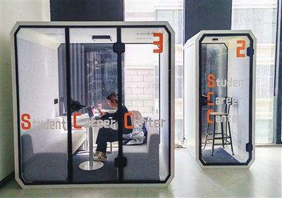 2025毕业季,为便于毕业生参加线上笔试、面试,南开大学学生就业指导中心分别在八里台校区学生活动中心、津南校区大通学生中心设置了静音面试间,为大学生面试提供方便。