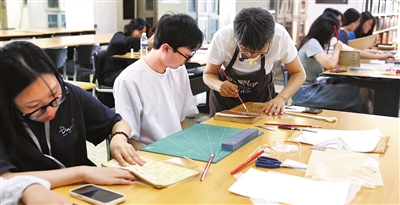 日前,来自韩国国立韩巴大学中文系的大学生研学团在天津外国语大学图书馆学习古法造纸术、活字印刷术、古籍修复等课程,触摸中华文明的辉煌历史成就。