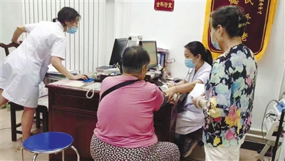 近日,市气象台发布高温橙色预警后,我市南开区宁福里社区卫生服务站家庭医生对管辖居民进行血压监测。 照片由受访单位提供