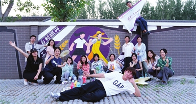 暑期实践支队队员们在参与设计、绘制的墙绘前合影留念。 受访者供图