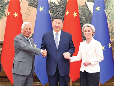 三是践行多边主义,维护国际规则秩序。面对战争与和平、竞争与合作、封闭与开放的重大选择,多边主义、团结合作才是正确答案。中欧要共同维护第二次世界大战结束后建立起来的国际规则和国际秩序,与时俱进推动构建更加公正合理的全球治理体系,携手应对气候变化等全球性挑战,让多边主义的火炬照亮人类前行之路。中欧要支持通过政治手段和平解决国际争端。中方一贯从事情本身的是非曲直出发,主张劝和促谈,倡导标本兼治。中方愿同欧方加强协调,推动今年联合国气候变化贝伦大会取得成功,为应对气候变化和全球绿色转型作出更大贡献。中方也愿同欧方开展人工智能领域政策沟通和务实合作,共同推动平等有序的世界多极化、普惠包容的经济全球化。