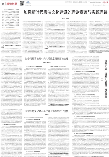 习近平总书记在对天津考察调研时强调,“天津要深入发掘历史文化资源,加强历史文化遗产和红色文化资源保护”。拥有丰富红色文化资源和独特城市风貌的天津,在中国共产党领导中国人民进行救国、兴国、强国的伟大事业进程中,始终与国家命运紧密相连。“红色是中国共产党、中华人民共和国最鲜亮的底色。”高校作为文化传承的重要阵地,在推动津派文化发展、滋养城市文明的过程中,更应深入挖掘天津红色文化的育人价值,持续强化思政引领力,让青年学生在天津的发展历程中探寻“以文化人”的精神凝聚,传承“以文润城”的文化底蕴,感悟凭津向海的蓬勃力量。
