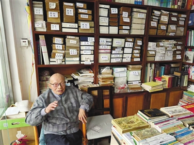 题图:江澄波先生生前在苏州文学山房旧书店内(王道 摄影)