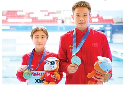 本报讯(记者 谢晨)2025年世界游泳锦标赛跳水项目昨天在新加坡继续进行,中国跳水“梦之队”包揽了单日产出的两枚金牌。其中,天津选手朱勇鑫搭档谢佩铃斩获混双10米台冠军,郑九源摘得男子1米板金牌。