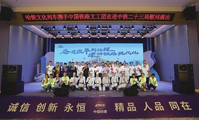 7月24日,哈铁文化列车携手中国铁路文工团走进中铁二十三局佳同项目,为现场近100名一线建设者带来了以“奋进改革新征程 建功铁路现代化”为主题的慰问演出。这场精彩纷呈的文化盛宴,以艺术之名致敬劳动者,用文化力量凝聚发展共识,让佳同铁路建设者收获了一场专属奋斗者的“夏日礼包”。 图/文 于鸿麒