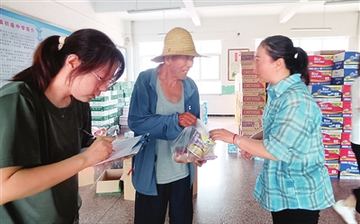 安置点救灾物资发放秩序井然。 记者 钱进 摄
