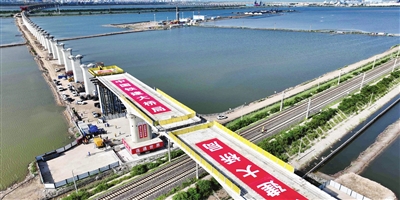 本报讯(记者 万红 摄影 张磊)昨天8时30分,由雄安高速铁路有限公司建设、中国铁建大桥局承建的津潍高铁天津段唯一的转体桥工程——滨海南特大桥跨南港铁路148米连续梁转体桥,成功实现双墩同步转体,为项目后续建设进一步推进打下基础。
