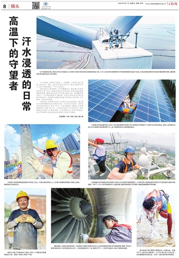 255米高的气象观测塔,守护者攀援而上,维护着关乎城市安全的气象“耳目”;高温炙烤的光伏电站旁,运维员细致清理着遮挡隐患,确保绿色电流无声流淌;海滩上那一道道黝黑的身影与一声声嘹亮的哨音,编织起一张张无形的安全之网;停机坪热浪灼人,检修师在高温的机舱与发动机之间穿梭,守护着每一次的安全起落。