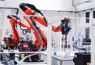 晨光照进天津大学智能建造实验室,刘重阳将3D打印的曲面模板举向光源。