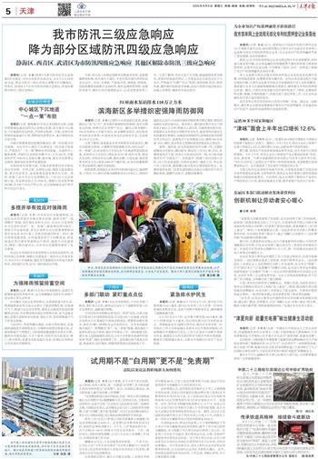 目前,我市及上游地区强降雨过程基本结束,受前期强降雨影响,我市境内大清河、中亭河等河道仍保持较高水位运行。对此,水情组、气象海洋组、调度组、物资组、抢险组继续加密联合会商研判,强化监测预警预报,加强防汛值守,做好行洪河道调度运行,以及巡堤查险等工作。记者了解到,我市正处于主汛期,极端强降雨多发频发,其他市防指成员单位、工作组及各区应密切关注天气变化,严格落实“叫醒”“叫应”机制,保持预案、队伍、物资热备,随时做好抢险处突准备;还在行洪的河道沿线各区加强人员管控,确保我市安全度汛。