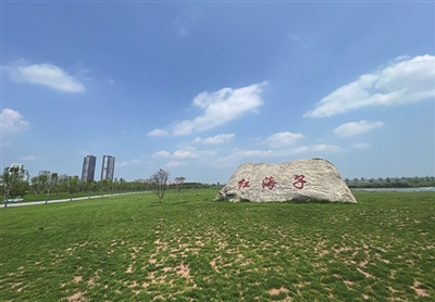 阿勒腾席热镇东南,毛乌素沙地东北边缘,一幅生机勃勃的建设图景正在展开。桩机发出巨大轰鸣声,一根根9米长的钢板桩被稳稳打入地下,栈桥工程进度条正加速推进。中铁二十三局红海子项目负责人表示:“目前我们已经栽种白杜、垂柳约1000棵,铺设草坪约40000平方米,花卉种植约20000平方米,完成工程总量的约80%。” 图/文 陈丽杰