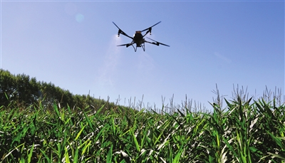 8月7日,在北大荒集团黑龙江格球山农场,一架植保无人机为玉米喷施“营养液”。当日是立秋,始入秋季,万物开始由葱郁向结实转变。 新华社发