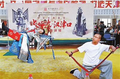 本报讯(记者 刘莉莉 摄影 姚文生)昨日,天津京剧院排练厅里锣鼓铿锵,英姿“武”动,国家艺术基金资助项目、厉派武生经典剧目《长坂坡·汉津口》人才培训班在这里举行结业仪式。经过一个月的名家任教集中培训,学员们在“夏练三伏”的汗水中收获技艺提升,传承中华文化。