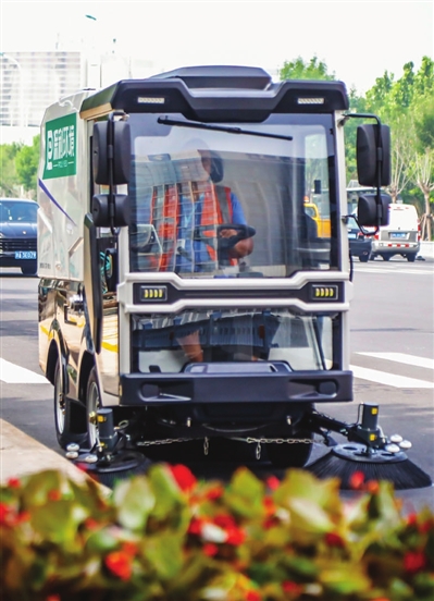 河西区环境卫生作业单位保利公司新增配小型新能源湿式扫路机,内置空调,同时具备强力吸扫、外部管吸和洗路喷洒三种功能,在安全、高效、环保的同时大大减轻了保洁人员的工作量。