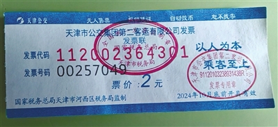 记者在刘先生处看到了那张过期的公交票据,由国家税务总局天津市河西区税务局监制,为市公交集团第二客运有限公司发票,票价2元,上面写明“2024年10月底前开具有效”。