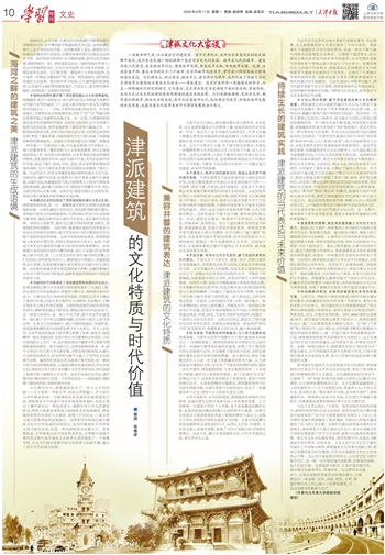 一座城市的气质,往往藏在它的建筑里。漫步天津街头,或许你会在意风区的欧式楼群中驻足,或许会在民园广场的拱廊下感受旧日时光的余温。城市是人民的城市。建筑承载人民情感,更承载城市记忆,塑造城市风貌,彰显城市文脉,体现城市文明。天津,这座会通中西、兼容古今的北方门户城市,在百年城市化进程中,孕育出一种深具地方特质的建筑表达。它扎根本土,回应现实,融合多元,讲求理性与秩序,逐渐形成了深植于当代天津城市土壤的地方建筑文化体系——津派建筑。这并非某种单一风格建筑的命名,而是一种跨越时代的空间语言、文化象征,是天津在特定历史语境下由社会结构、营造传统、生活方式以及自然地理环境共同塑造的建筑实践结果。它们或精致典雅,或朴实无华,都有着扎根城市、贴近生活的温度,其中沉淀着城市文化,延续着空间美学,体现出城市发展的历史厚度,也蕴含着当代城市更新中可持续发展的启示意义。