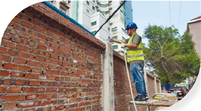 原来,四化里社区党委依托“马场365,天天送幸福”服务品牌,专门解决老百姓的“急难愁盼”事。他们发挥“驷马联建”机制的优势,整合多方力量主动破局,积极联动负责旧楼改造的施工方,组织协调会,请来居民代表一块商量。最终功夫不负有心人,把围墙维修顺利纳入整体改造大工程。修墙也不是一帆风顺,遇到挡道的树和地下盘根错节的各种管线,社区党委又忙活起来:找园林部门科学移树,协调水电燃气单位现场踏勘,一点点排除难题。现在可好了,那堵破败的老墙已经安全拆除,新砌的墙体正在一天天“长高”。