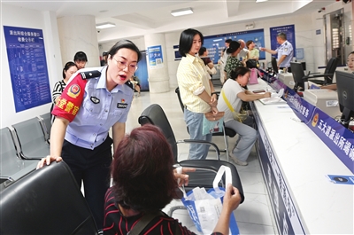 “设置这个岗位的目的是用‘大堂警官’这‘一根针’穿起公安政务服务‘千条线’。”市公安局政务服务总队窗口受理专班民警阎明说,“一窗通办”解决了群众办事不知去哪儿的问题。接下来,办事该带什么证件,这就需要有人现场答疑解惑。“大堂警官”就是这个人。