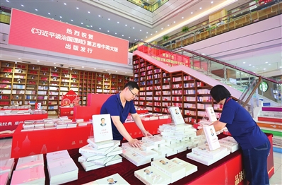 本报讯(记者 张雯婧)近日,中央宣传部(国务院新闻办公室)会同中央党史和文献研究院、中国外文局编辑的《习近平谈治国理政》第五卷,由外文出版社以中英文版出版,面向海内外发行。天津充分发挥新华书店主题时政读物宣传发行主阵地、主渠道作用,在全市新华书店重点宣传陈列,打造线上线下完整的宣传发行体系。