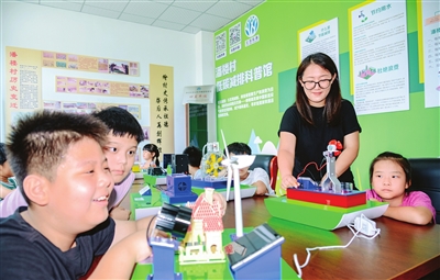 暑假期间,西青区各街镇社区策划开展了一系列形式多样、内容丰富的文化活动,为青少年打造了充实而有意义的假期生活。在精武镇潘楼村低碳减排科普馆,社区志愿者带领青少年开展“科普知识小能手”活动,通过动手制作风能发电、太阳能小屋等模型,让孩子们在“做中学”,了解清洁能源的原理与魅力,深入体会低碳生活的重要意义。 记者 潘立峰 摄