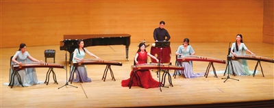 压轴登场的古筝协奏曲《紫禁·瑶光》堪称本场演出视听亮点。吉炜领奏的团队以传统筝搭配七声弦制古筝及复原古乐器筑、轧筝,在王梓硕的打击乐配合下,既展现宫廷音乐的风雅,又以“玉之光采”颂扬君子品格,古朴与创新的融合赢得全场持久掌声。