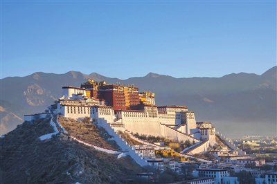 沐浴在晨光之中的拉萨布达拉宫。 新华社发