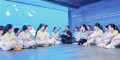 近日,天津师范大学马克思主义学院联合天津市实验中学在天津泰达航母主题公园开展暑期行走的思政课。通过“甲板课堂追溯历史、舱内探索寻找任务卡、创作手抄报分享交流”等环节,调动学生的积极性和参与度,让思政教育从课本走向社会、从平面走向立体,推动“大思政课”走深走实。 记者 张立 摄