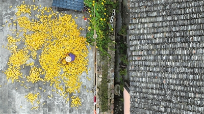 近日,重庆市秀山县洪安镇猛董村村民抢抓晴好天气,在房前屋后忙着晾晒玉米、水稻、辣椒等农作物。