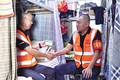 近日,武汉天气持续高温,驻津央企中国铁建大桥局武汉地铁12号线项目驻队党代表主动前往工人宿舍,了解工人生活情况并送上防暑药品。