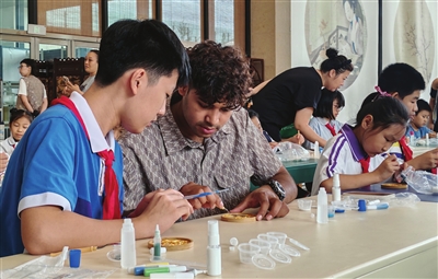 日前,“上合有约 津彩非遗”2025国际青少年天津文旅行——天津博物馆站”活动成功举行,中外青少年共同沉浸式体验津派文化,加强了中外青少年的文化交流。 记者 曹彤 摄
