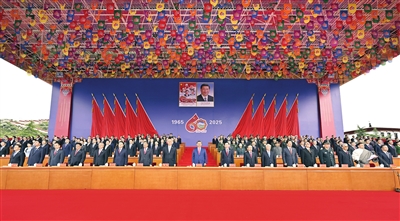 王沪宁发表讲话。他说,1965年9月,在党中央亲切关怀和党的民族政策光辉照耀下,西藏自治区宣告成立。这是西藏发展史上具有划时代意义的大事,巩固了西藏和平解放和民主改革的伟大成果,实现了西藏社会制度的历史性跨越。60年来,西藏经济社会全面发展,民族区域自治制度成功实践,民族团结日益巩固,各族人民生活蒸蒸日上,充分展现了中国共产党领导的坚强力量,充分展现了我国社会主义制度的显著政治优势。