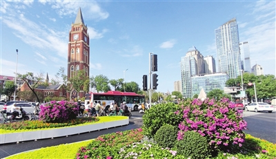 日前,我市部分街道摆放花箱,多彩植物为津城增色不少。