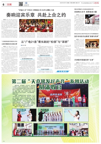 古丽夏提演唱的新疆维吾尔木卡姆选段《纳瓦木卡姆》,瞬间将观众带入神秘多彩的丝绸之路意境;青年指挥家马丁携手天津音乐学院青年民族管弦乐团带来的《喜迎十方》,巧妙融合上海合作组织成员国经典音乐,表达了对各国来宾的热烈欢迎,奏响了团聚序曲;古琴重奏《流水》,由青年演奏家孙瀛、邱桐、洪韵精彩演绎,让观众感受到中国传统文化的博大精深;民族管弦乐《太阳出来喜洋洋》充满活力,展现出天津的烟火气与幸福感,以及喜迎上海合作组织峰会的浓厚氛围;阮合奏《丝路驼铃》由天津音乐学院“心弦阮乐”室内乐团呈现,重现了丝绸之路的盛景,见证了文明的交流与融合;唢呐演奏家王展展和竹笛演奏家李乐联袂登台,与天津音乐学院青年交响乐团合作的《长白山歌》,展现了大自然的雄浑与壮美;来自新疆的拜尔娜带来的乌兹别克斯坦歌曲《欢乐地跳吧》,传递出欢聚共舞的热情,让观众深切感受到各国的情感共鸣与文明互鉴;俄罗斯女高音歌唱家茱莉亚·皮里波维奇、巴拉莱卡演奏家康斯坦丁·扎哈拉托、冬不拉演奏家玛丽亚·舒米娜以及巴扬演奏家理纳特·德里耶夫,以民族室内乐形式演绎的《卡琳卡》《山楂树》等经典曲目,将现场气氛推向高潮。二胡演奏家陈军与天津音乐学院民乐系师生张雯迪、马晓莹、李怀真、王靖宁、郎禹焓、王昕颖共同带来的《狂野飞骏图》,展现出高超的演奏技巧和蓬勃的生命力。最后,民族管弦乐《团聚》为本次音乐会画上圆满句号,表达了喜迎上海合作组织峰会的心情,以及对未来合作的美好期许。
