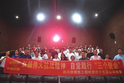 为纪念中国人民抗日战争暨世界反法西斯战争胜利80周年,铭记历史、缅怀先烈,传承和弘扬伟大抗战精神,近日,中铁二十三局集团四川铁锐信工程检测技术有限公司精心组织《南京照相馆》观影活动,用红色记忆凝聚奋进力量。观影后在影院进行了交流座谈会,检测公司党员、发展对象、党外知识分子、新入职员工以及职工家属子女围绕如何在学习、工作和生活中弘扬伟大抗战精神主题进行交流发言。 文 陈海龙