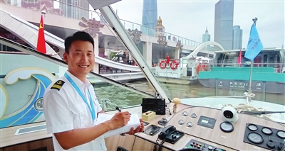 天津海河游船船长薛太强:“上合因海河更融合,海河因上合更包容!热忱欢迎中外宾客,‘打卡’天津最美名片。”