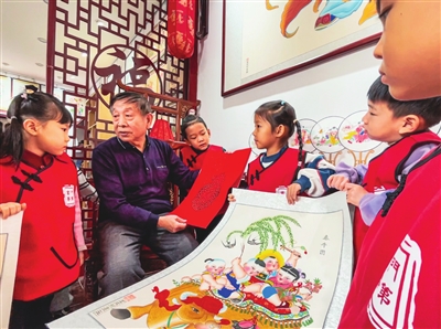 国家级非物质文化遗产代表性项目杨柳青木版年画代表性传承人霍庆顺为孩子们解读年画知识