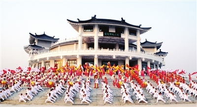 百余名武校师生在霍元甲纪念馆前进行武术展演