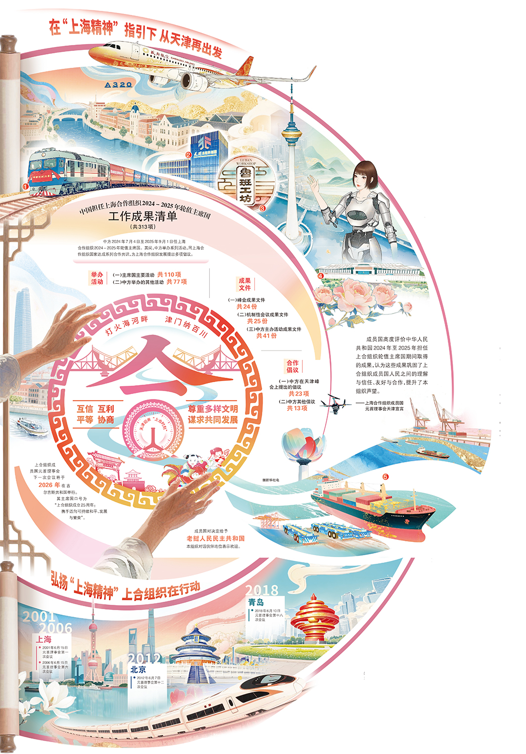 成员国高度评价中华人民共和国2024年至2025年担任上合组织轮值主席国期间取得的成果,认为这些成果巩固了上合组织成员国人民之间的理解与信任、友好与合作,提升了本组织声望。