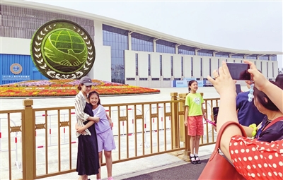 连日来,众多市民前来梅江会展中心拍照,沉浸式感受上合组织天津峰会的浓厚氛围。 记者 廖晨霞 周伟 摄影报道