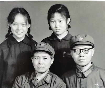 曾在《冀中导报》担任编辑记者的李清波(前排右一),积极投身抗日宣传。图为其与爱人靳纪及两个女儿合影。
