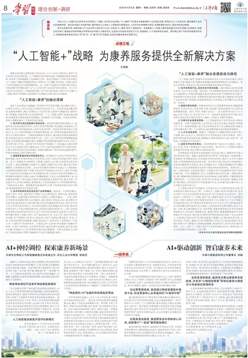 我市在政策布局、场景构建与产业生态等方面的先行先试,为推动“AI+康养”提供了重要参考。本版聚焦人工智能与康养服务融合的内在逻辑与实践路径,既探讨技术替代、数据驱动和跨界融合所带来的效率提升与服务优化,也直面当前面临的适老化不足、数据隐私、人才短缺等现实挑战。期待通过政产学研用多维度协同发力,持续推动康养服务实现从“有”到“优”、从“量”到“质”的跨越,实现优质康养服务的普惠可及。